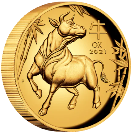Lunární série III. – exkluzivní zlatá mince Year of the Ox (Rok buvola) 1 Oz 2021 High Relief PROOF